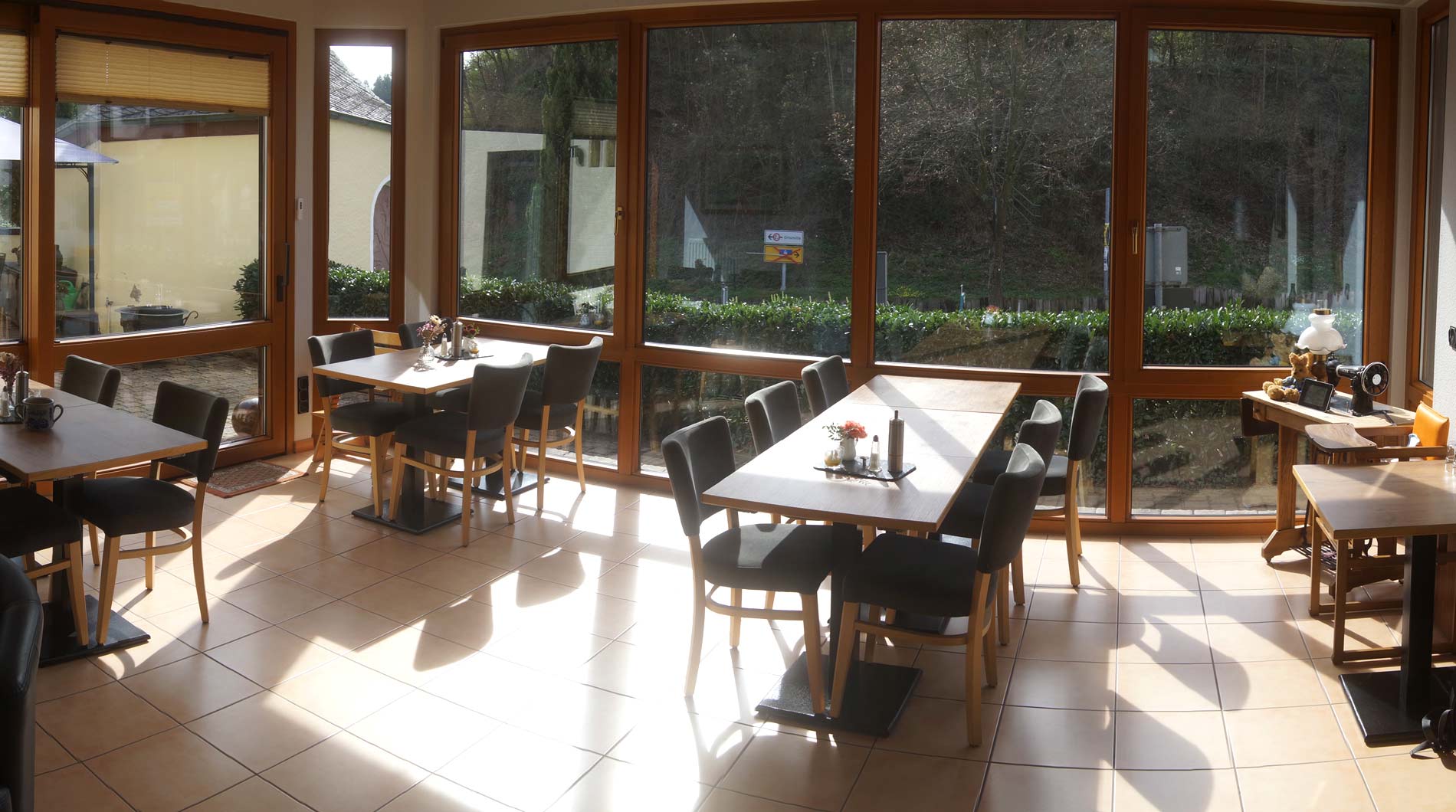 Sie beginnen den Tag an einem liebevoll gedeckten Frühstückstisch in unserem hellen, sonnendurchfluteten Wintergarten.