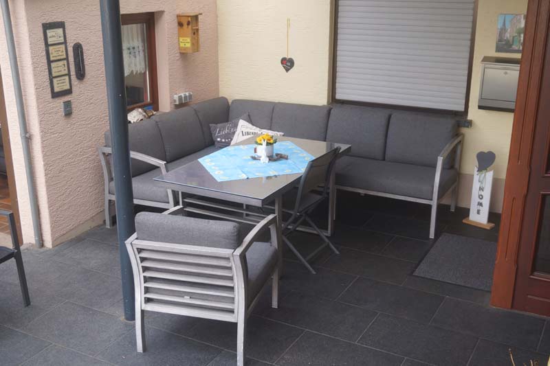 Lassen Sie doch den Tag bei einem Glas Wein gemütlich auf unserer Terrasse ausklingen.